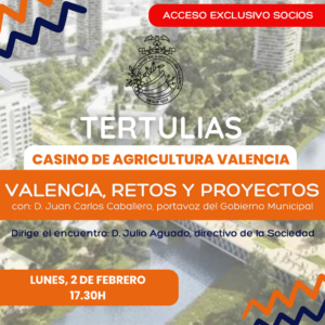 TERTULIAS DEL CASINO | “Valencia, retos y proyectos” con Julio Aguado (directivo de la Sociedad) y Juan Carlos Caballero (concejal PP)