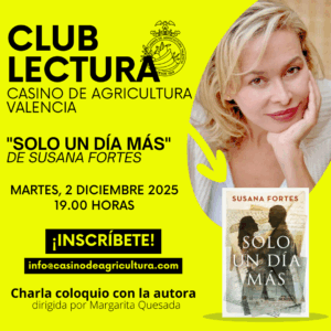 CLUB DE LECTURA | “Solo un día más” de Susana Fortes EXCLUSIVO SOCIOS Susana Fortes es Licenciada en Geografía e Historia y en Historia de América. Ha combinado su pasión por […] 02 Dic 19:00 - 20:00 Casino de agricultura Valencia, España