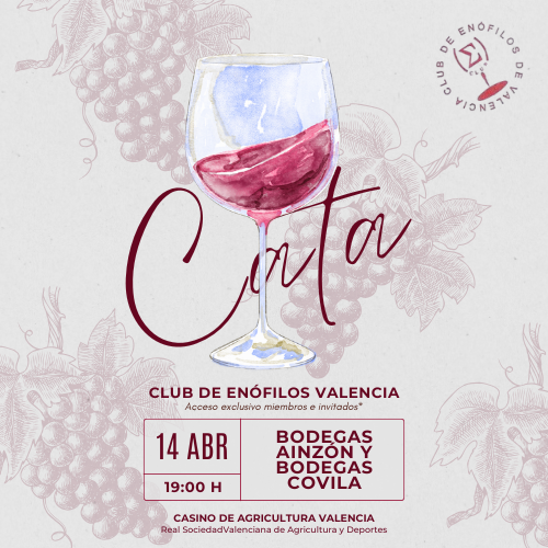 El Club de Enófilos Valencia te invita a una nueva cita el próximo martes 14 a las 19:00 horas, en esta ocasión dedicada a la presentación de las últimas novedades de Bodegas Ainzón (DOP Campo de Borja) y Bodegas Covila (DOCa Rioja).
