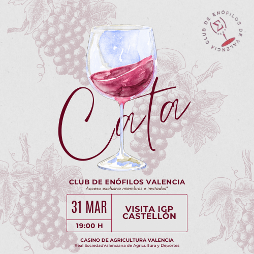 El Club de Enófilos Valencia te invita a una nueva cita el próximo martes 31 a las 19:00 horas, en esta ocasión dedicada a un interesante recorrido por la IGP Castellón.