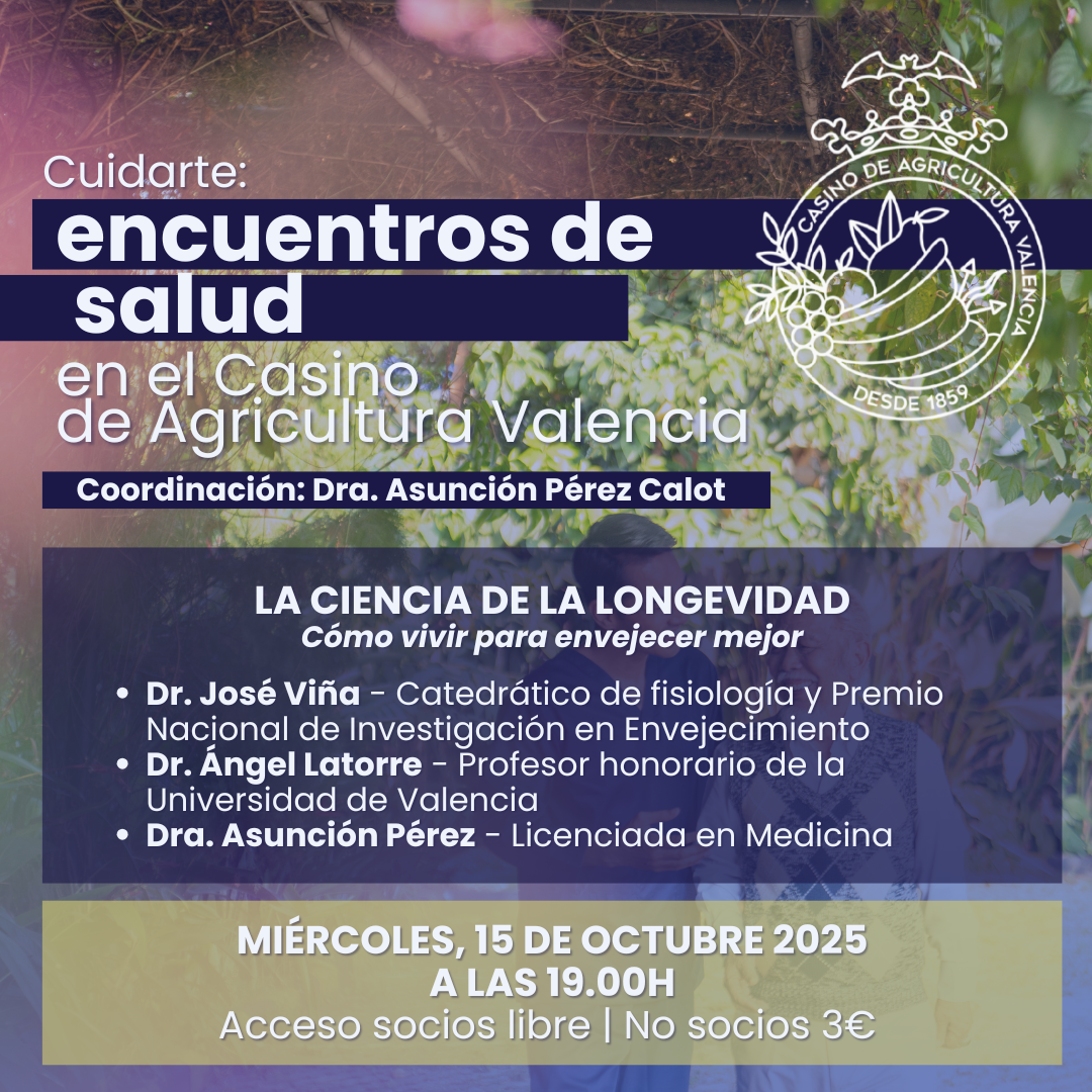 El Casino de Agricultura de Valencia acoge una nueva sesión de su ciclo “Cuidarte: Encuentros de Salud”, coordinado por la Dra. Asunción Pérez Calot, con el objetivo de ofrecer a socios y visitantes espacios de aprendizaje y reflexión sobre temas de salud y bienestar.