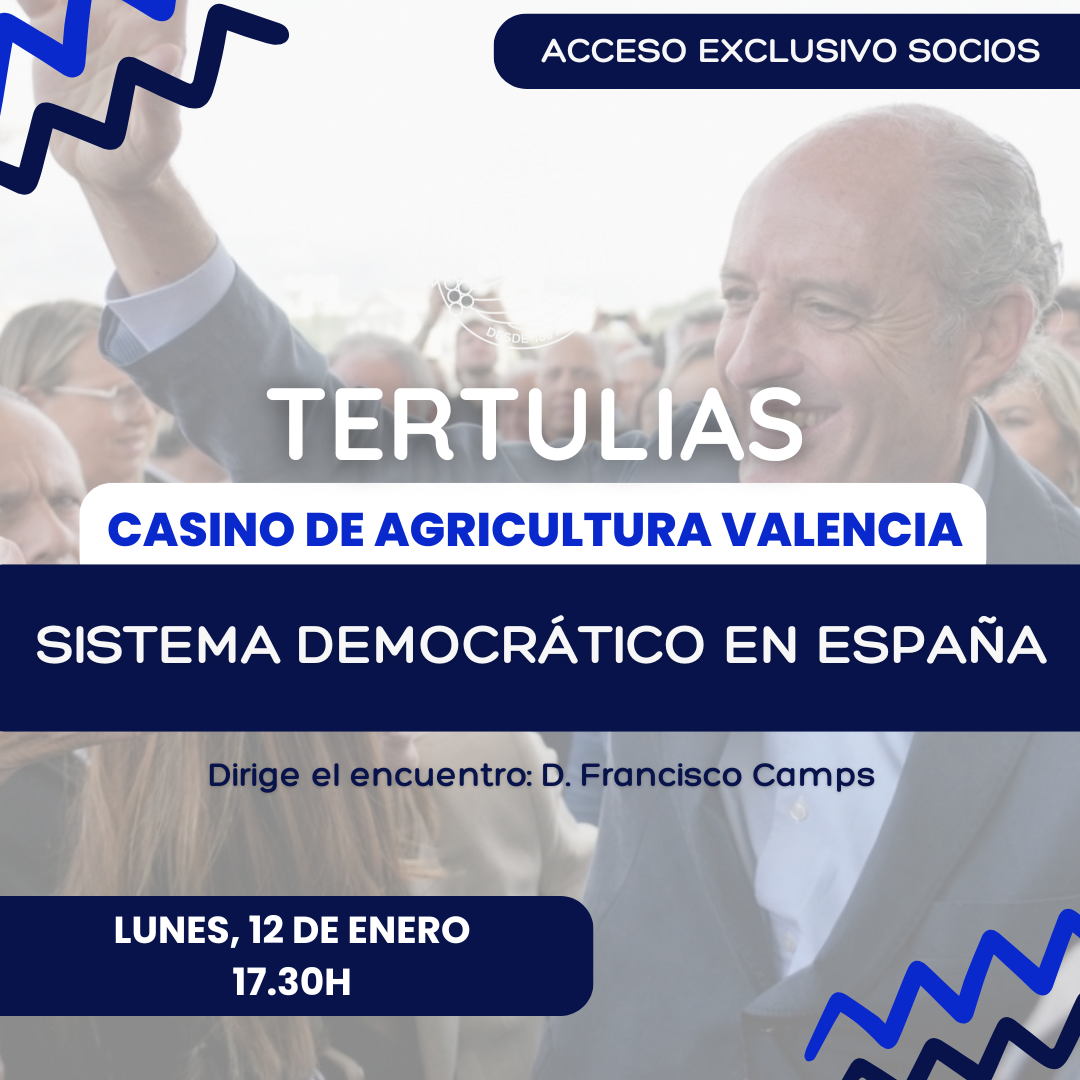 El próximo lunes día 12 de enero a las 17:30 h exclusiva para socios, tendrá lugar una vez más la Tertulia del Casino de Agricultura. En esta ocasión se debatirá sobre el sistema democrático en España.